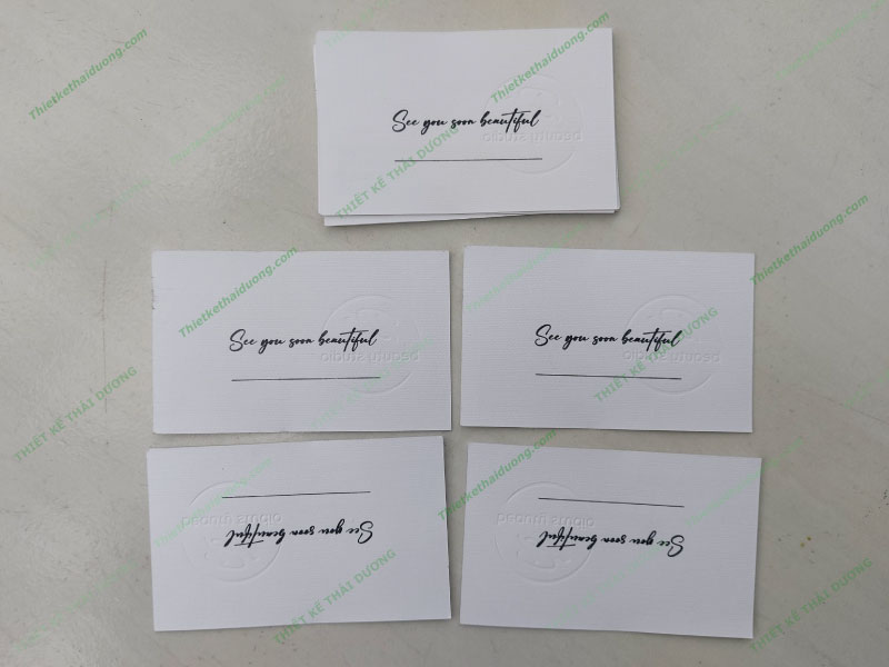 Lưu ý, khi cần in name card gấp, in card lấy liền thì không nền chọn kiểu in card đen ép kim này. Bởi lẽ thời gian thực hiện cần ít nhất 2 ngày làm việc.