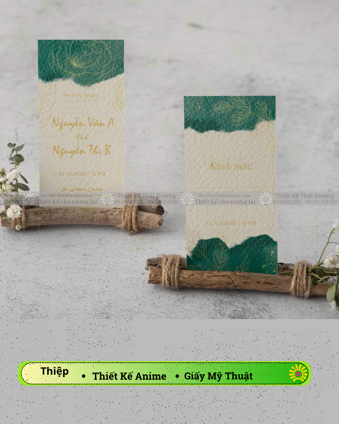 - Tùy chọn thiết kế thiệp ép kim, khắc laser hoặc in nổi sang trọng.